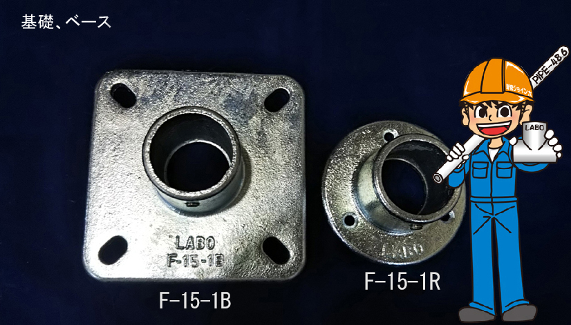 LABO(ラボ)金具 表面処理:溶融亜鉛めっき仕上げ (パイプ止まり金具と貫通金具)