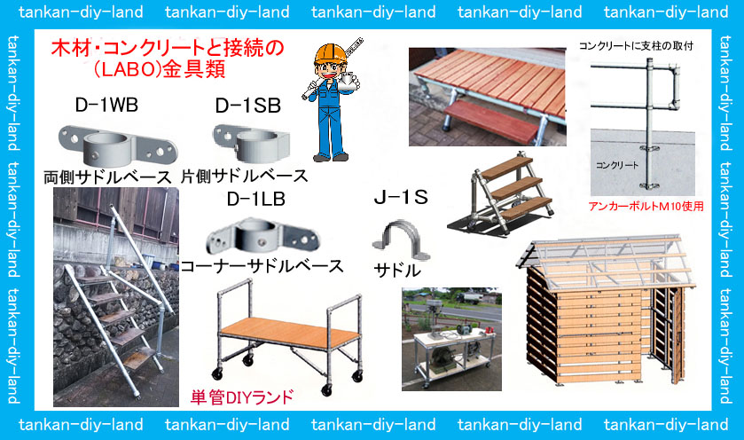 単管パイプと(木材・コンクリート支柱)等の接続金具類