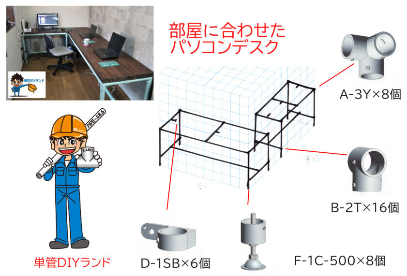 単管パイプパソコンデスクに使用したLABO(ラボ)継手金具