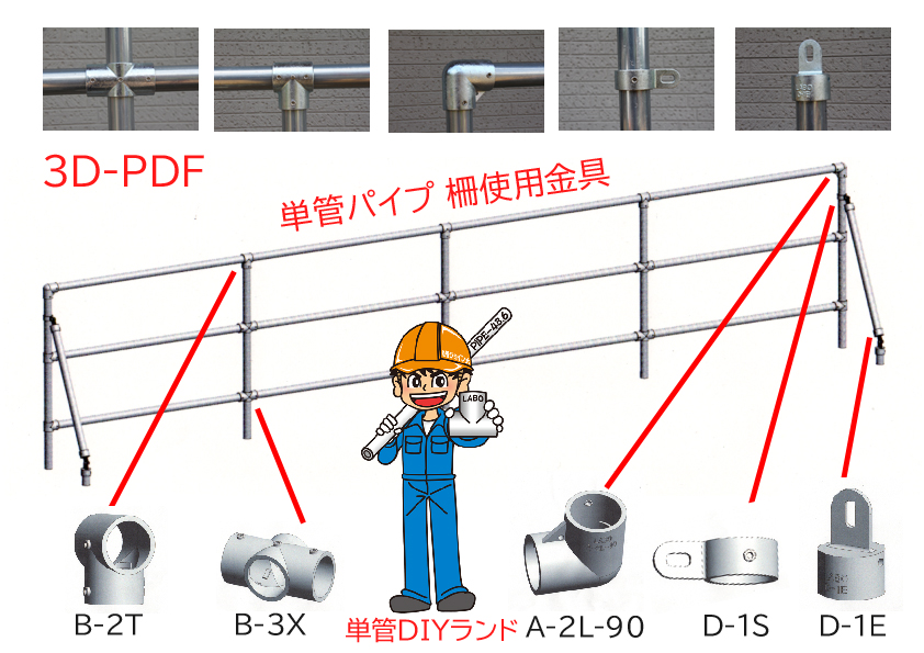 単管パイプの柵使用LABO(ラボ)ジョイント 3D-PDF