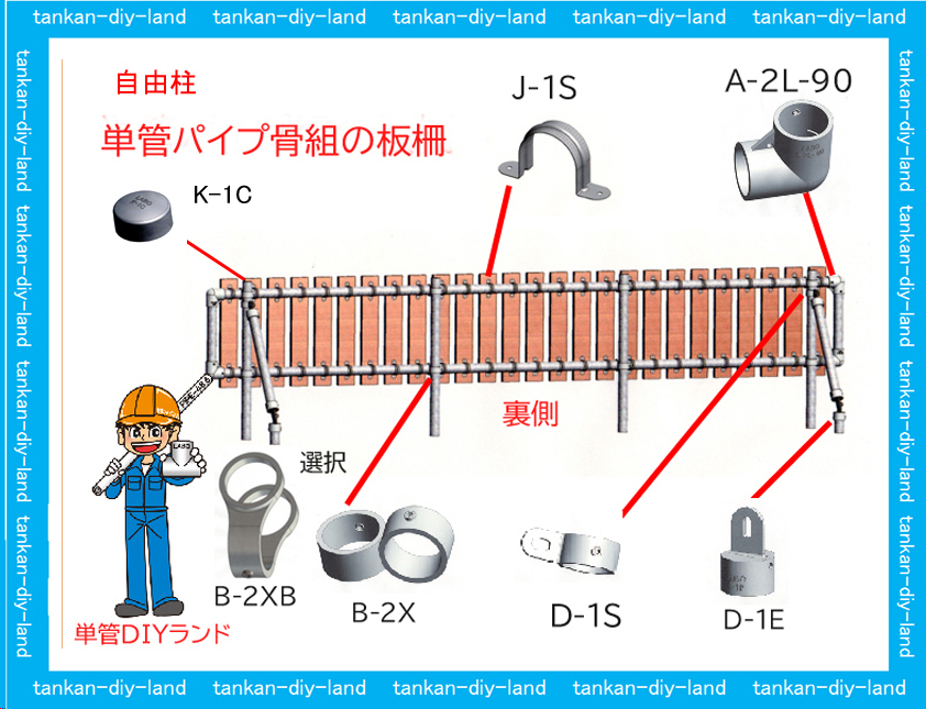 単管パイプ目隠し板塀『自由柱タイプに使用金具類