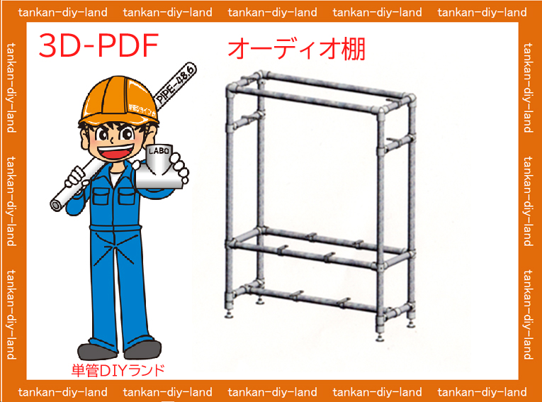 単管パイプのオーディオ棚の骨組 金具の中まで見られる 3D-PDF