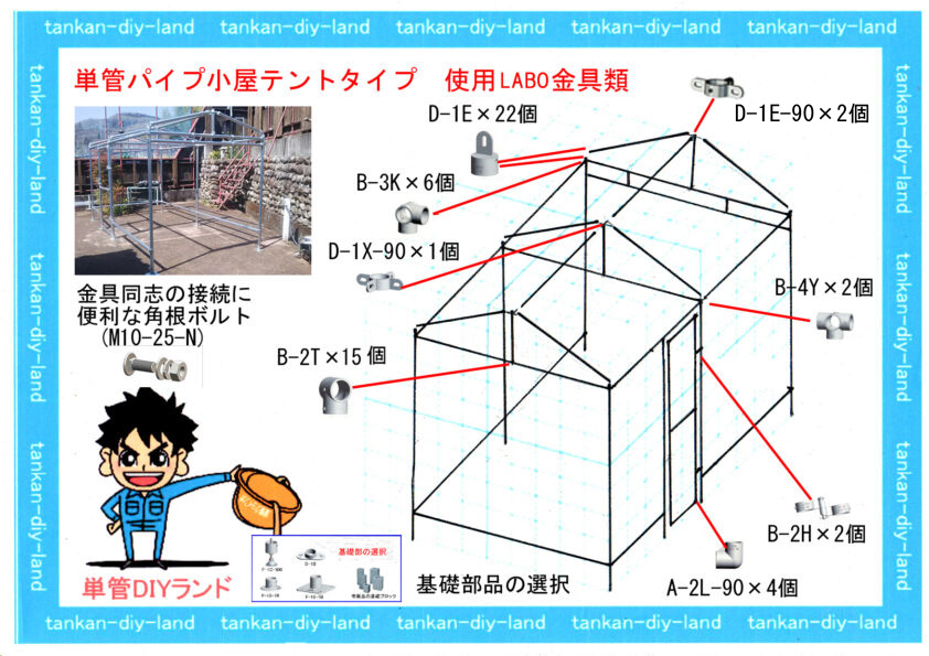 注意:単管パイプで小屋を建てる際は、建築基準法などの関連法令を事前にご確認ください。