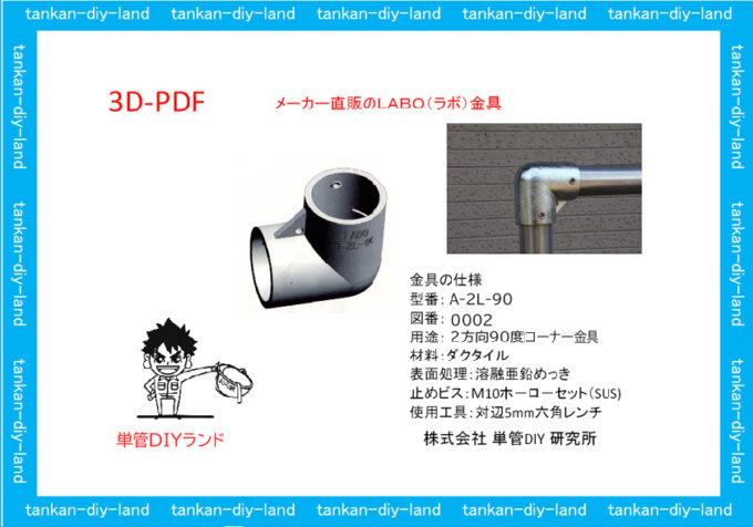A-2L-90 2方向90度コーナー金具 金具の中まで見られる 3D-PDF