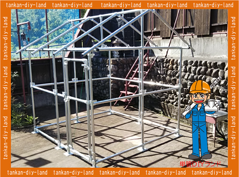 単管パイプ多目的小屋 テントタイプのパイプ骨組み