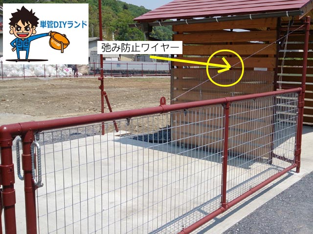 ゲートの弛み防止と横転対策(ステンレスワイヤー)