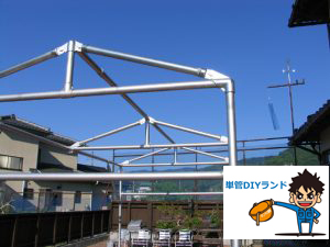 単管パイプ継手DIY工作、屋根の勾配