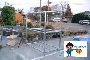 単管パイプ多目的小屋 軒タイプのパイプ骨組み
