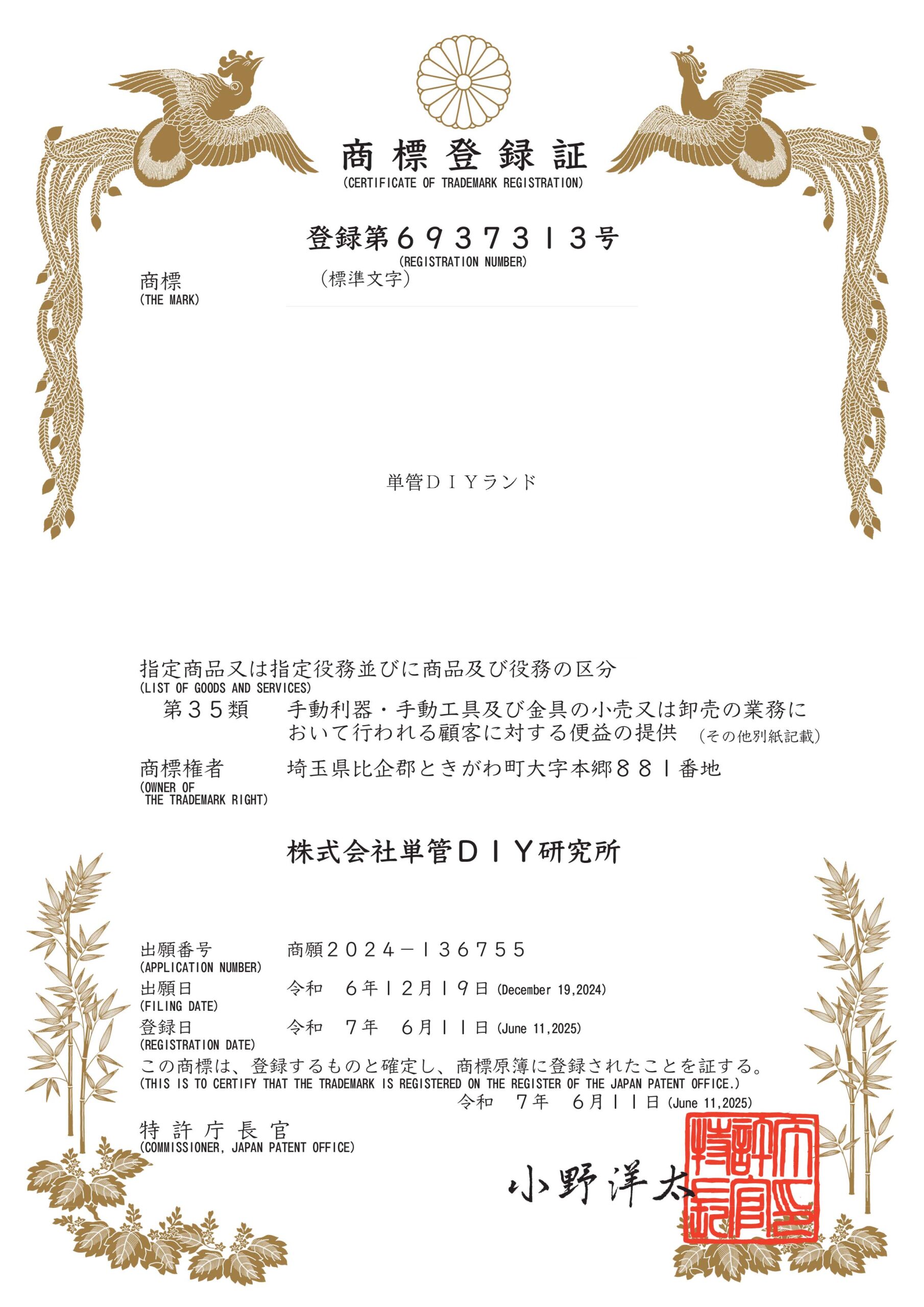 今回の商標登録は、皆さんに安心して私たちの製品を選んでいただくため、そして「単管DIYランド」と「LABO金具」が、私たち株式会社単管DIY研究所のブランドであるということを正式に証明するために行いました。これは、私たちがこれからも品質とサービスを大切にしていくという決意の表れでもあります。