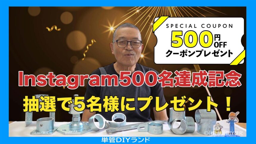 そしてこの度、Instagramフォロワーが500名達成を目前としています!これを記念し、日頃の感謝の気持ちを込めて、ささやかではございますが、単管DIYランド初となる特別なプレゼント企画を実施することにいたしました!