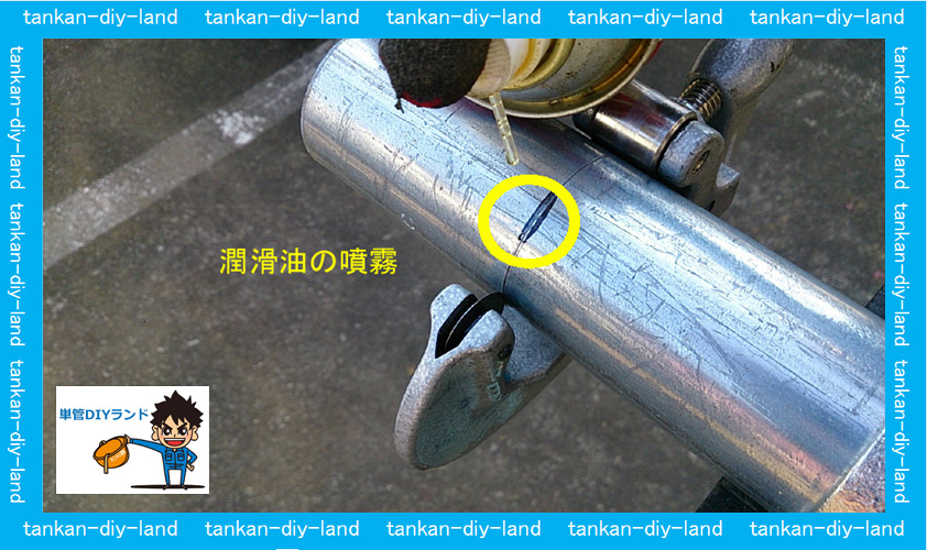 潤滑油の噴霧 少し締めてから1~2回転させ、また少し締め1~2回転の繰り返しで約10~15回転で切断。