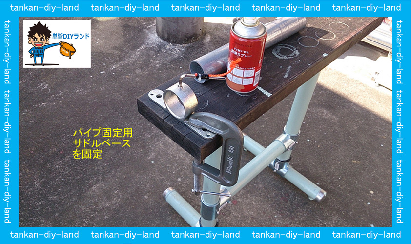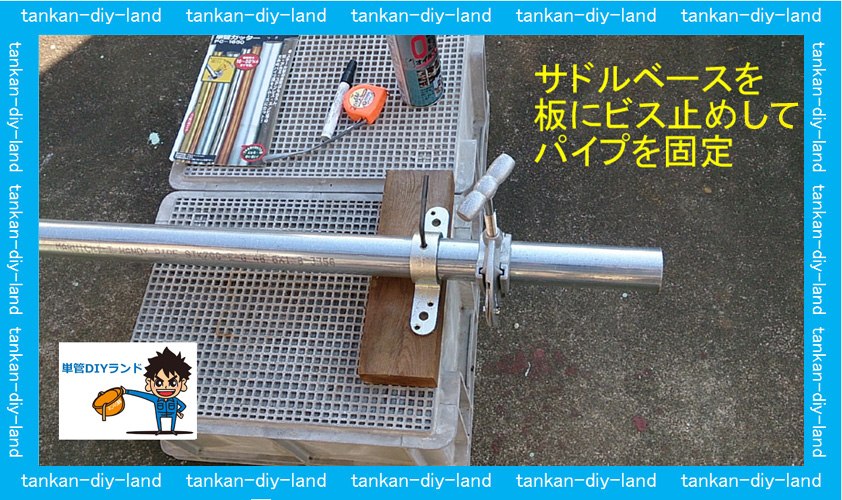 切断箇所にマーキング パイプ固定LABO(ラボ)金具(D-1WB)サドルベース使用