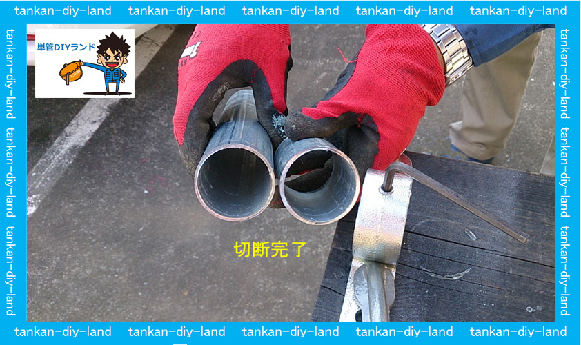 あっという間に、だれでも簡単に単管パイプカットの完了~!
