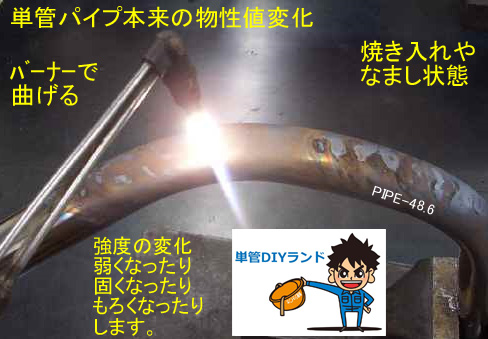 パイプの強度の変化とは(焼き入れ、なまし、穴加工)・弱くなったり、固くなったり、もろくなったりします。