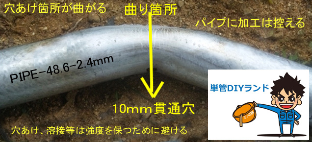 安全の為に出来る限りパイプ本体の加工を避けて、単管パイプ本来の物性値の変化で強度の低下を起こす原因を出来る限り取り去る工夫をしよう。tankan.tv