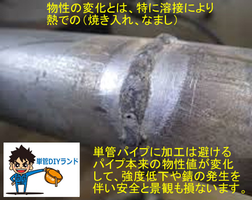 溶接はパイプ本来の物性値が変化する場合がございますので注意してください。