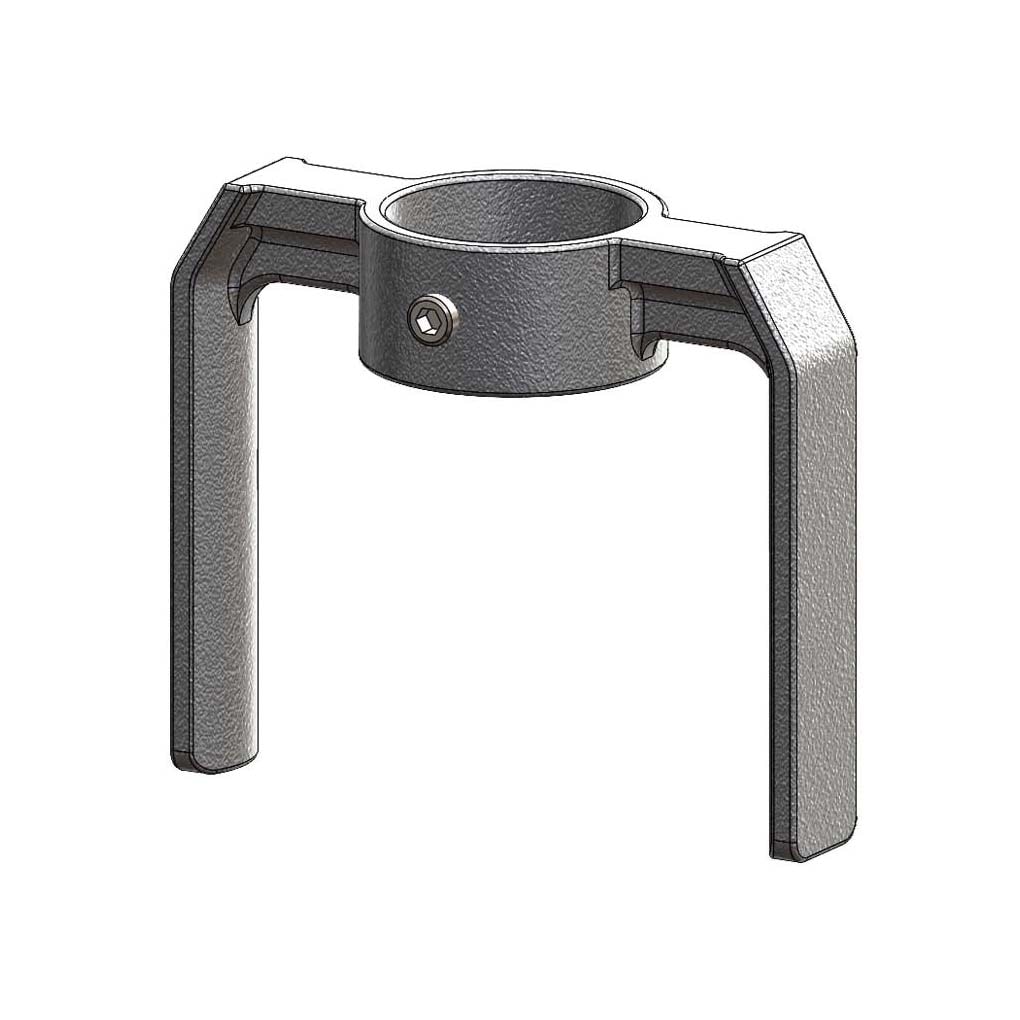![]() | B-4Y 5方向1箇所貫通金具 | 貫通した単管パイプの中間部から、直角3方向に3本のパイプを取り付ける金具です。 | |