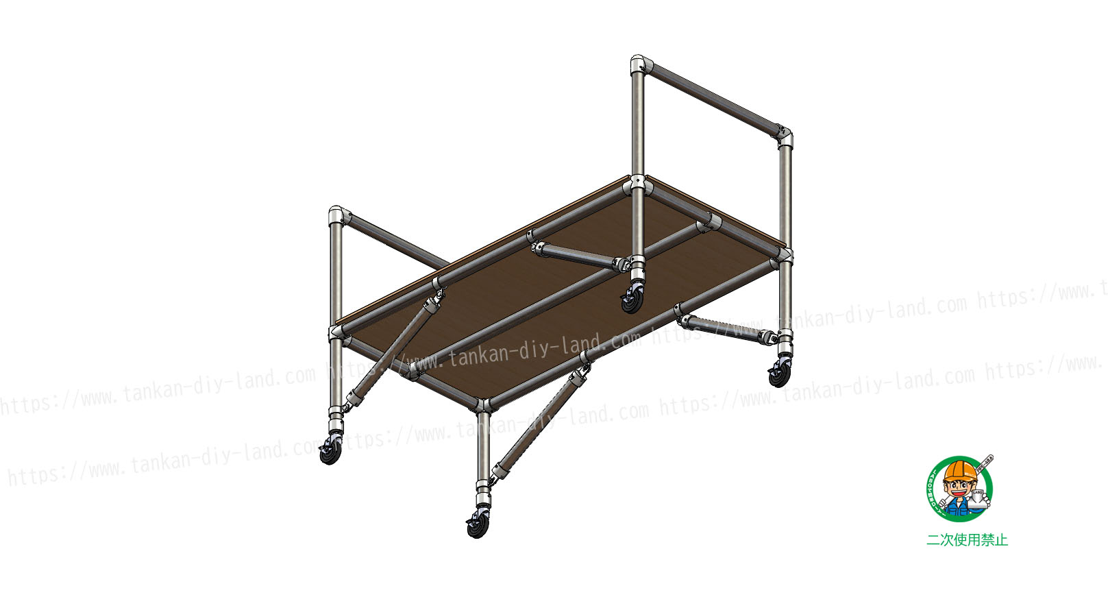 ※ 各単管パイプ、木材の寸法、キャスターのサイズ等はご使用方法・ご利用環境に合わせて調整ください。
